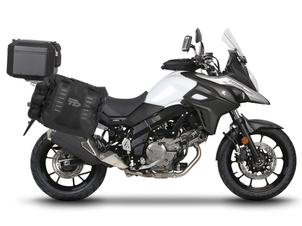 Kompletní sada bočních adventure brašen SHAD TERRA TR40 a černého hliníkového 55L topcase, včetně montážní sady SHAD SUZUKI DL 650 V-Strom