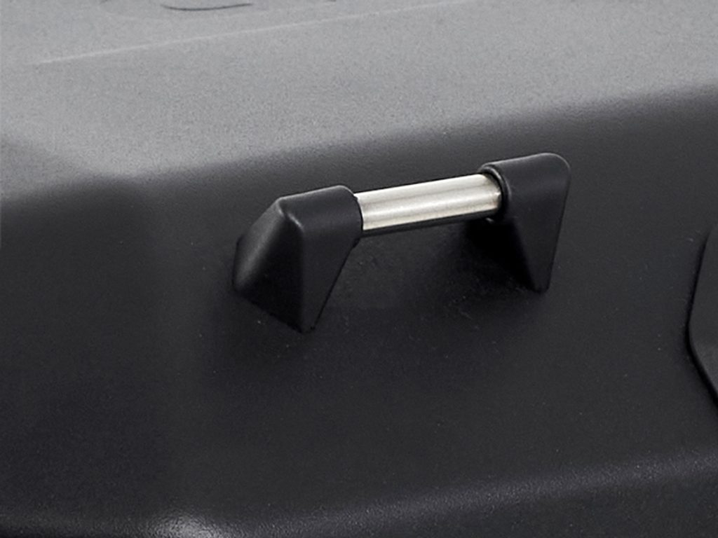 Unikátní integrovaný mechanismus zámku a madla umožňuje jednoduché ovládání jednou rukou a snadnou demontáž z motocyklu.