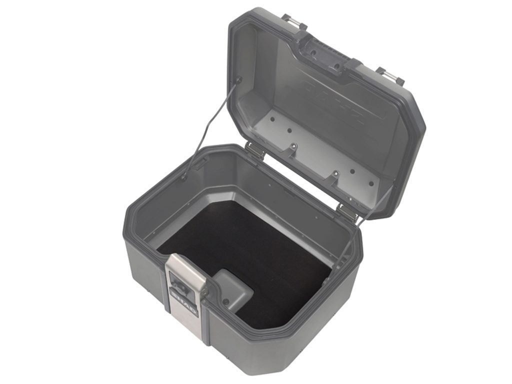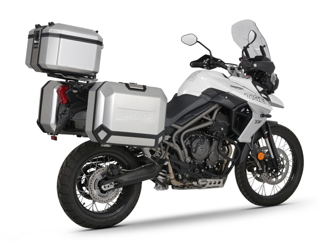 Kompletní sada černých hliníkových kufrů SHAD Terra obsahuje černý vrchní kufr TR48 s kapacitou 48L včetně plotny, levý černý hliníkový kufr TR47 s kapacitou 47L a pravý černý hliníkový kufr TR36 s kapacitou 36L kvůli umístění výfuku. Pravý kufr tak nebude vyčnívat. Sada obsahuje vše, co potřebujete k montáži obou kufrů.