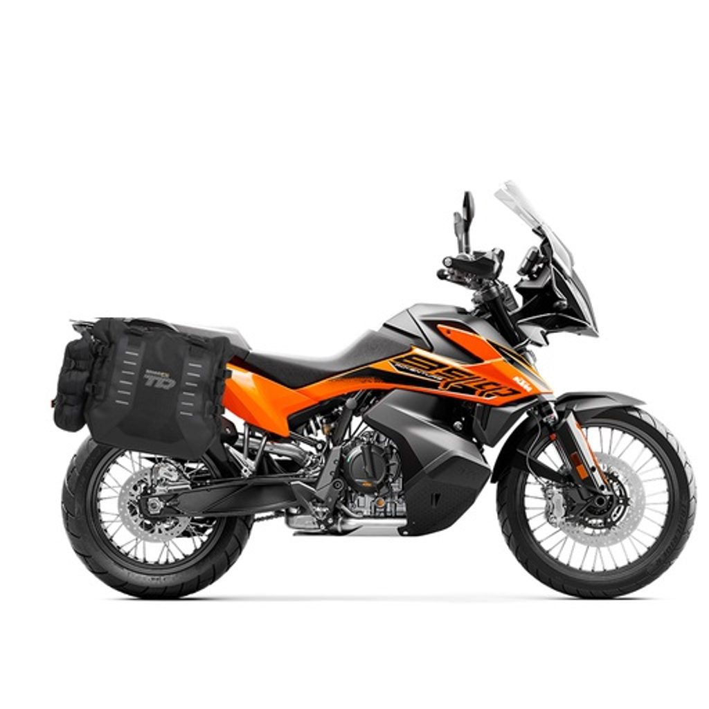 Sada ADVENTURE TERRA SHAD obsahuje sadu sedlových brašen TR40 určených pro jízdu v terénu a montážní sadu 4P SYSTÉM pro upevnění.