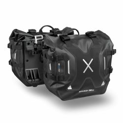 Tyto boční brašny rozšiřují řadu bočních adventure brašen TERRA a jsou jedinými 100% vodotěsnými brašnami s rychlou montáží a dvojitým bezpečnostním systémem, který umožňuje brašny uzavřít a uzamknout k motorce pomocí jediného klíče.