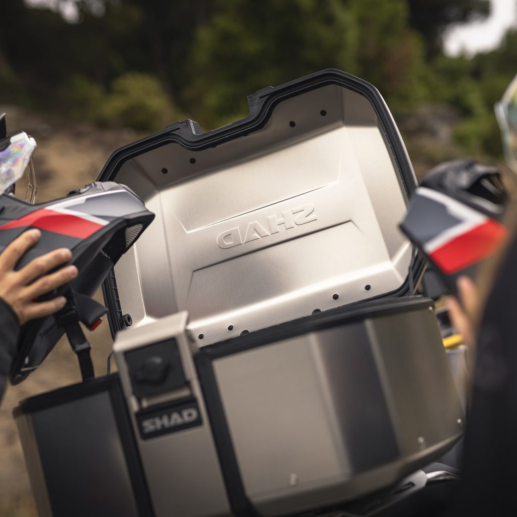 Vrchní kufr TERRA TR55 má kapacitu pro dvě výklopné přilby a vyniká tím, že je s hmotností 5,4 kg nejlehčím hliníkovým kufrem na trhu. Je navržený a vyrobený 100% v Barceloně. Jeho inovativní design je skvělým doplňkem každého adventure motocyklu. TERRA Pure Black nabízí prémiový matný černý lak na celém kufru. Špičkový kufr TERRA TR55 byl oceněn cenou ABC Awards díky svému designu zaměřenému na řešení klíčových aspektů pro použití na adventure motocyklech.