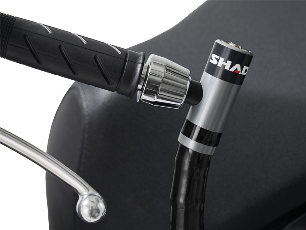 Zámky SHAD, SERIE 2: zámek na řídítka skútru, který se kombinuje s konkrétní montážní sadou přímo pro váš skútr. Sada zámku na řídítka ""SERIE 2"" pro váš motocykl je ideální sadou pro každodenní jízdy po městě nebo mezi městy.